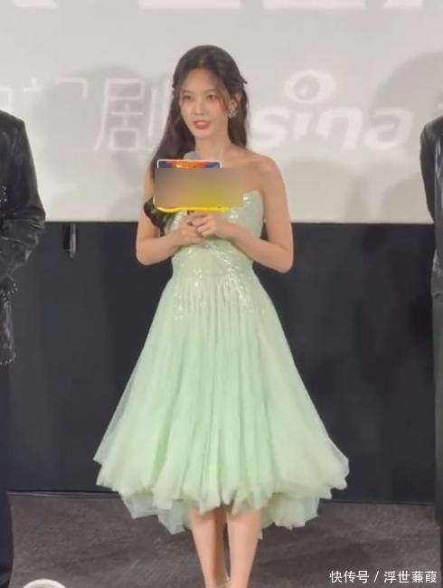 34. 此次活动中,她身穿浅绿色抹胸长裙亮相,宛如春日晨曦般清新动人。